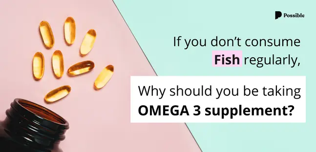 There are 3 types of Omega 3: EPA, DHA and ALA. EPA and DHA are more beneficial and are largely found in fish. Whereas ALA is found in vegetarian sources like flaxseeds, walnuts, and chia seeds. Though some part of ALA converts into EPA and DHA, the conversion is very low. Hence if you don’t eat fish regularly, it becomes quite important to supplement with an Omega 3 supplement.