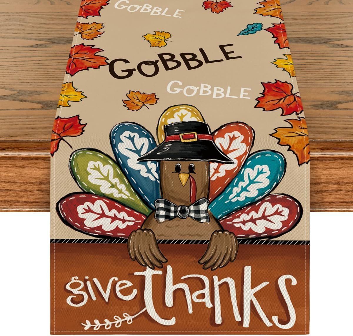Artoid Mode Turkey Give Thanks Thanksgiving Table Runner, Seasonal Fall Autumn Kitchen Dining Table Decoration for Home Party Decor 13×72 Inch