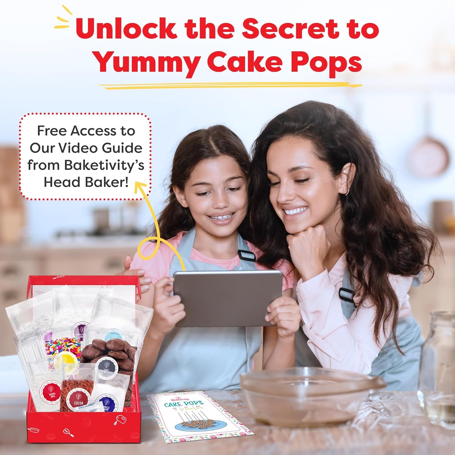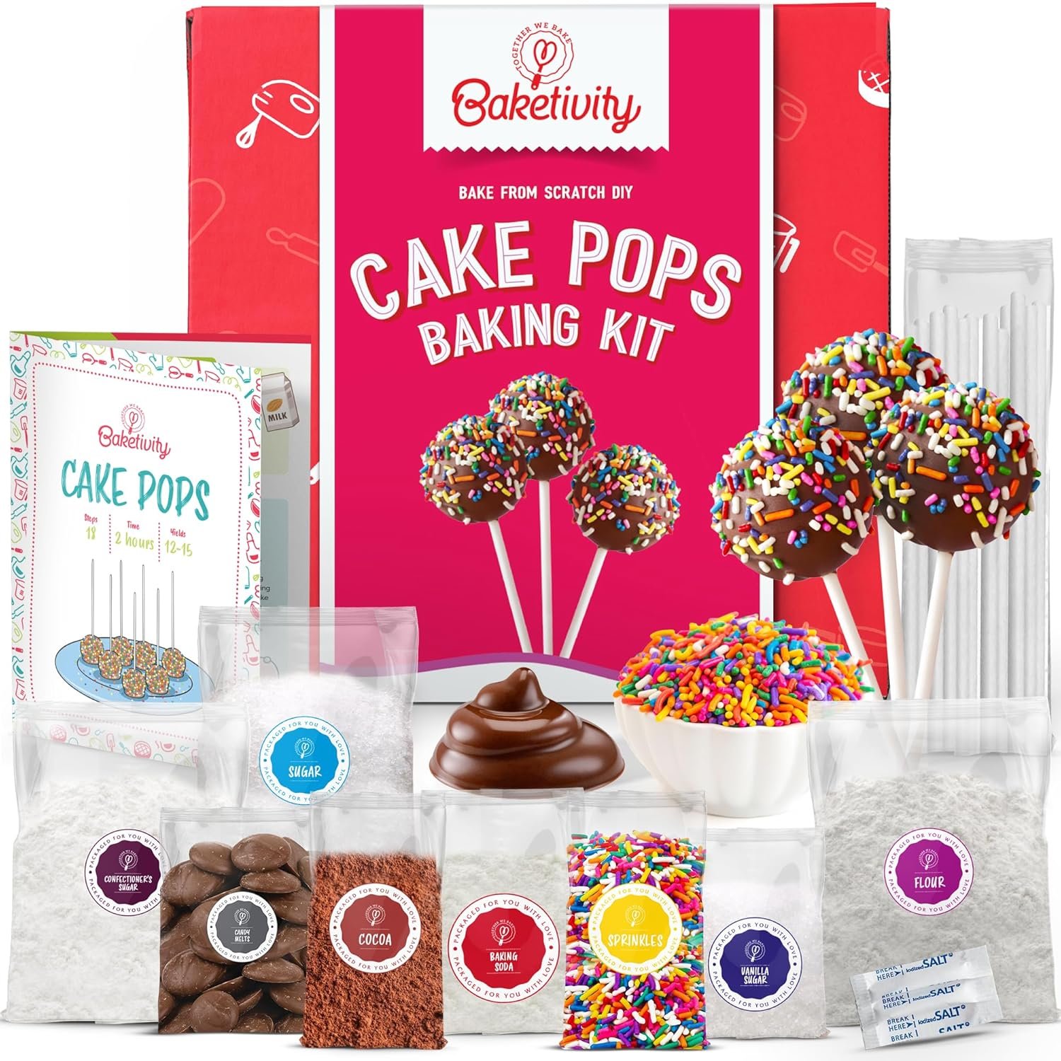 Baketivity DIY Cake Pop Baking Kit for Kids – Premeasured Ingredients, Decorating Supplies