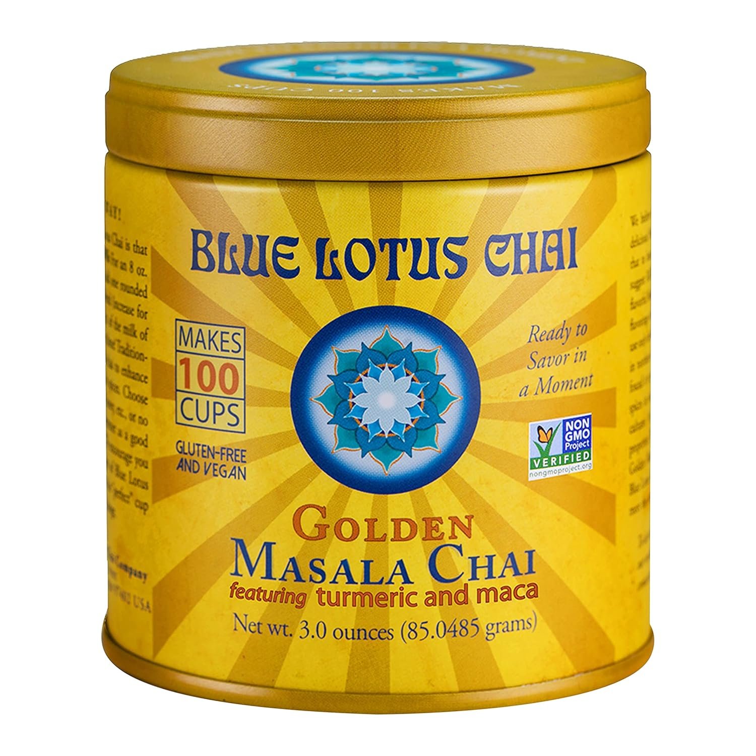 Blue Lotus Chai – Golden Masala Flavor Chai – Makes 100 Cups – 3 Ounce Masala Spiced Chai Powder with Organic Spices – Instant Indian Tea No Steeping – No Gluten