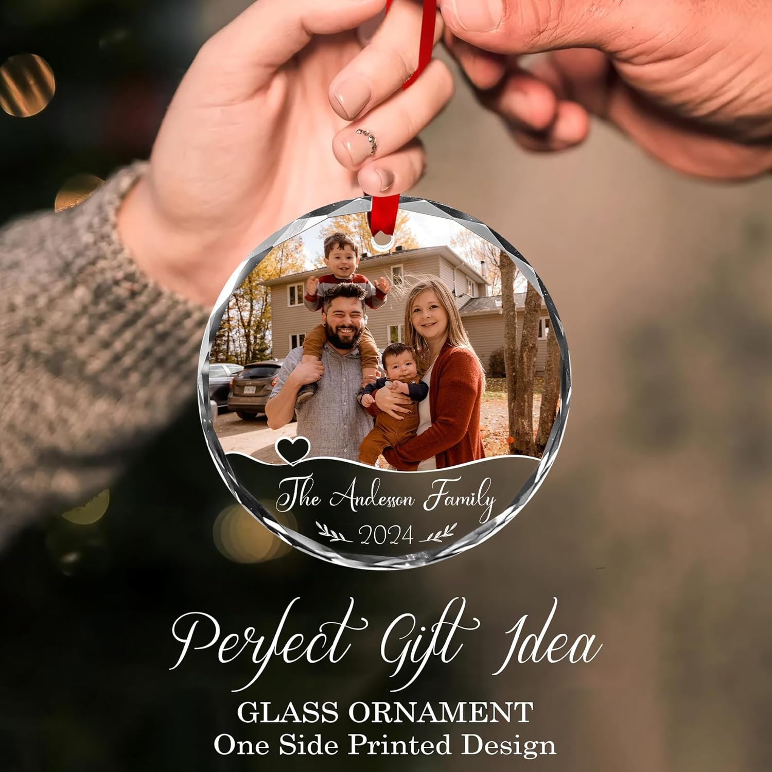 Custom Family Glass Ornament 2025 – Personalized Christmas, Mothers Day, Fathers Day Ornament with Custom Name, Photo, Date – Perfect Keepsake Gift for Family, Dad, Mom, Him, Her, Couple