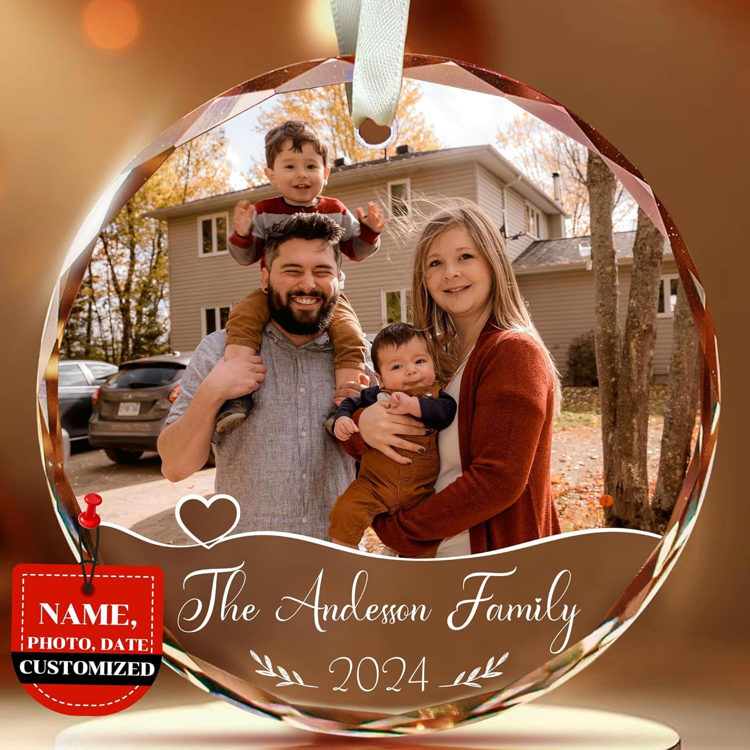 🎁 Personalized Family Glass Ornament: Click the “Customize Now” button to design your own ornament with your family name, photo, and date. Simply upload your image, and our designers will create a beautiful piece just for you!