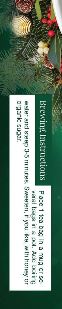 My absolute favorite holiday tea! Great for all winter. The flavor is balanced and is blended to perfection. Organic. The aroma is wonderful. I buy this every year. The individual boxes make great Christmas gifts. I sometimes give it with a mug, tea towel, book, candle, blanket, or slippers. Even the description on the box is written beautifully and makes it even more inviting. Everyone loves the tea!