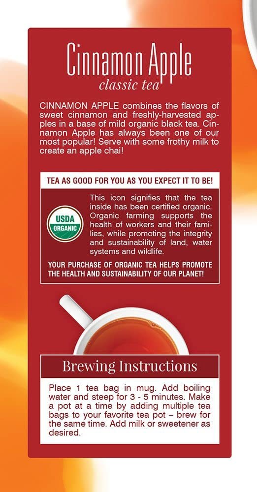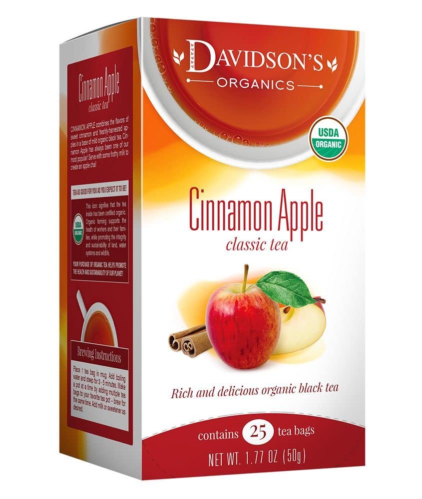 Davidson’s Organics, Cinnamon Apple, 25-count Tea Bags, Pack of 6