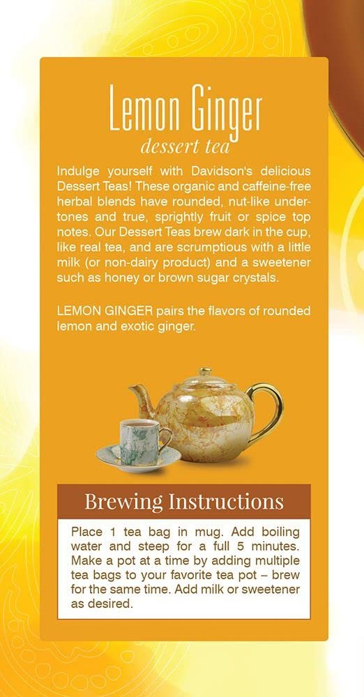 Davidson’s Organics, Lemon Ginger, 25-count Tea Bags, Pack of 6