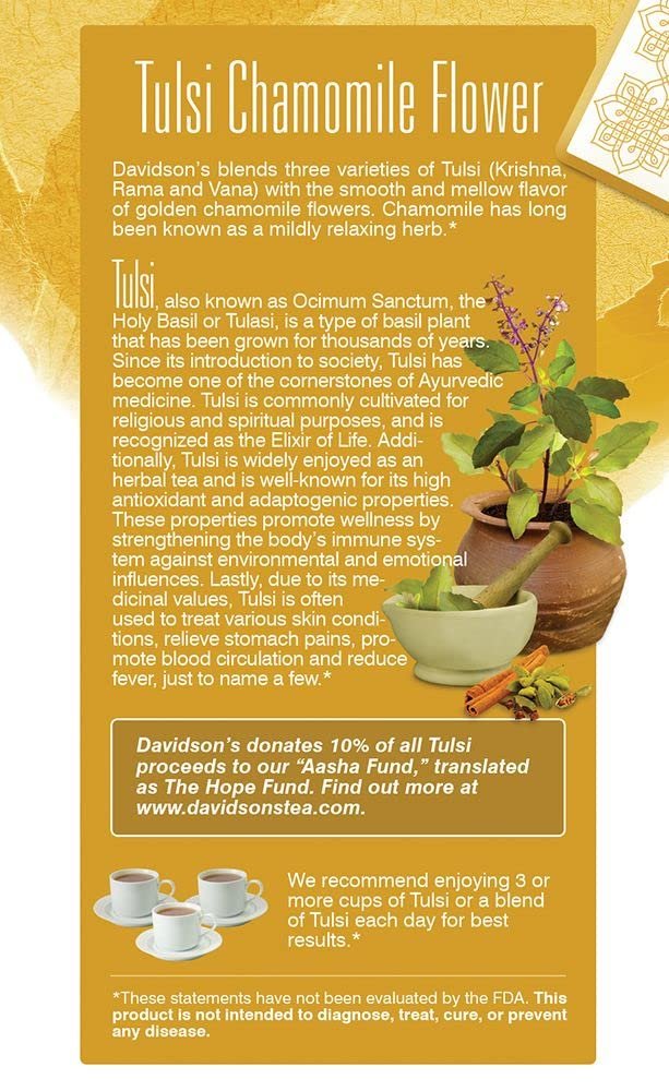 Davidson’s Organics, Tulsi Chamomile Flower, 25-count Tea Bags, Pack of 6