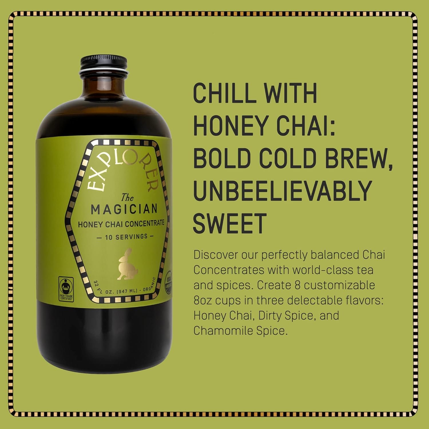 Explorer Organic Chai Tea Concentrate, Magician Spiced Honey, Drink Iced or Hot, 32 fl oz, Makes 8 Cups