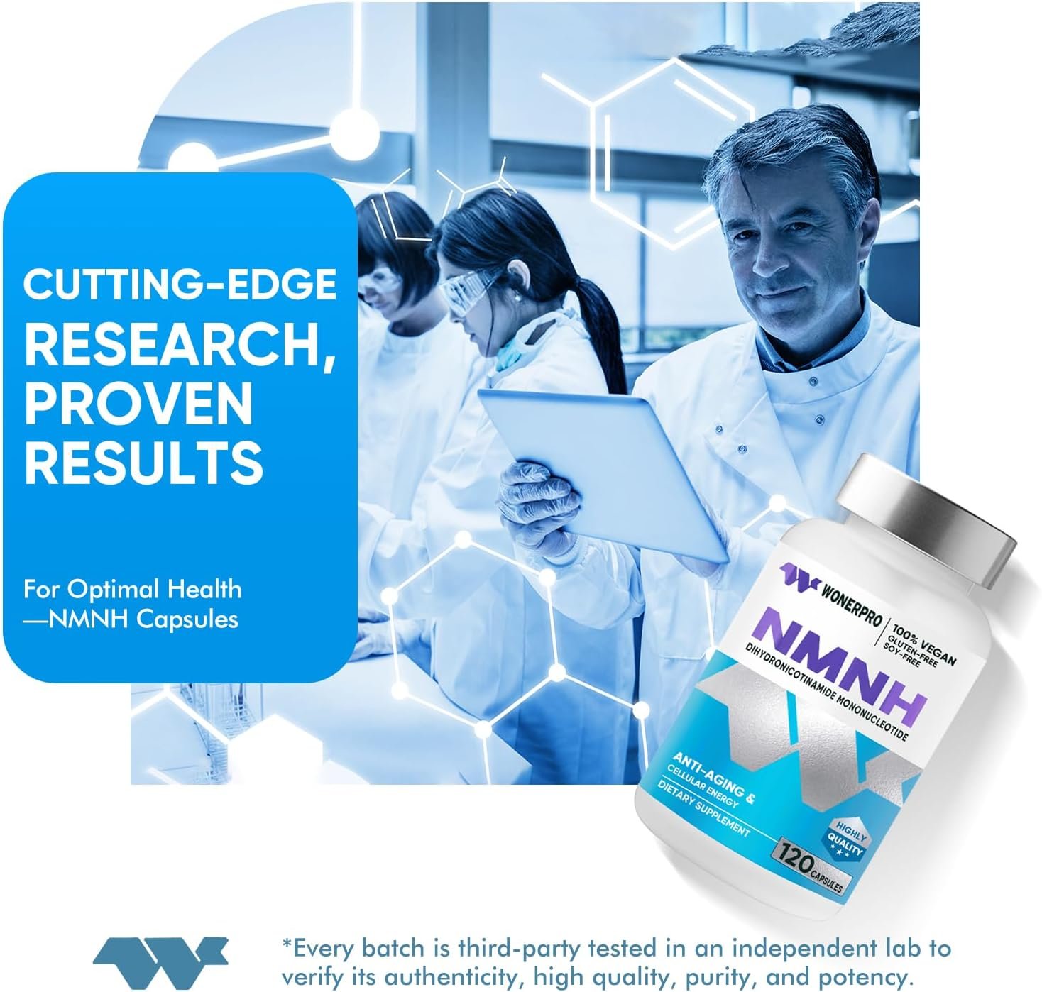 【Safety and Purity You Can Trust】WONERPRO NMNH is committed to safety and purity. Our capsules are vegan, gluten-free, non-GMO, and free from chemical solvents, artificial ingredients, colors, preservatives, and additives. We uphold the highest standards, testing our NMNH at every stage of production to ensure the purity and potency you deserve. Choose us for a safe and effective way to enhance your health and well-being.