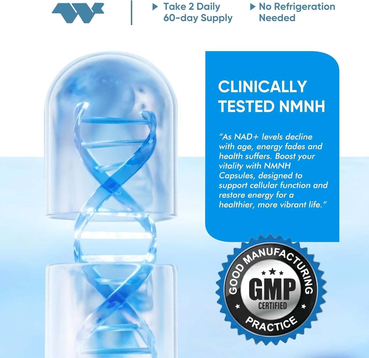 【Clinically-Proven】Backed by robust scientific research, NMNH stands out as a highly effective supplement for elevating NAD+ levels. Our formula is designed with precision to deliver anti-aging, energy-boosting, and comprehensive health benefits. Experience the power of NMNH as it helps your body maintain optimal NAD+ levels, keeping you feeling your best at any age.
