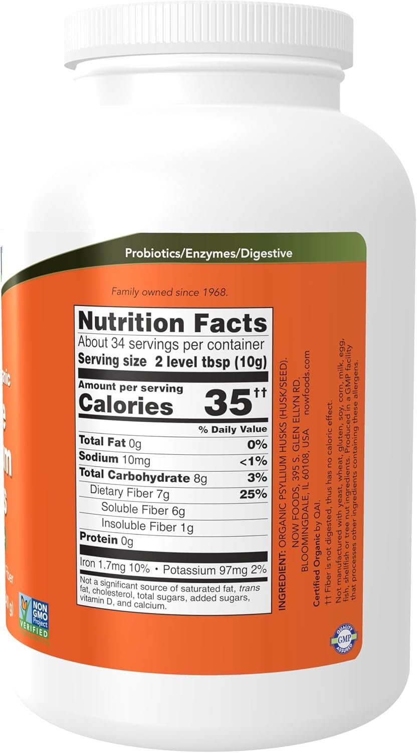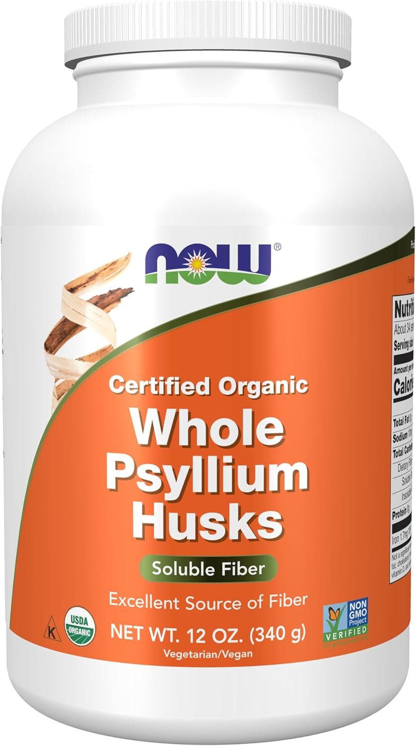 NOW Foods Supplements, Whole Psyllium Husks, Certified Organic, Non-GMO Project Verified, Soluble Fiber, 12-Ounce