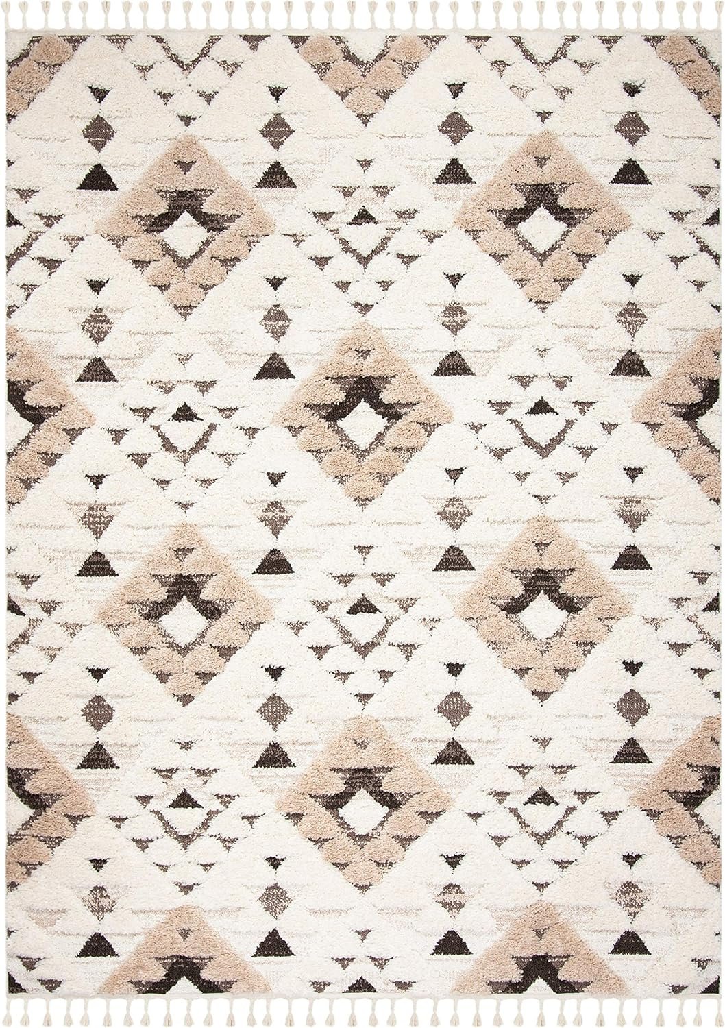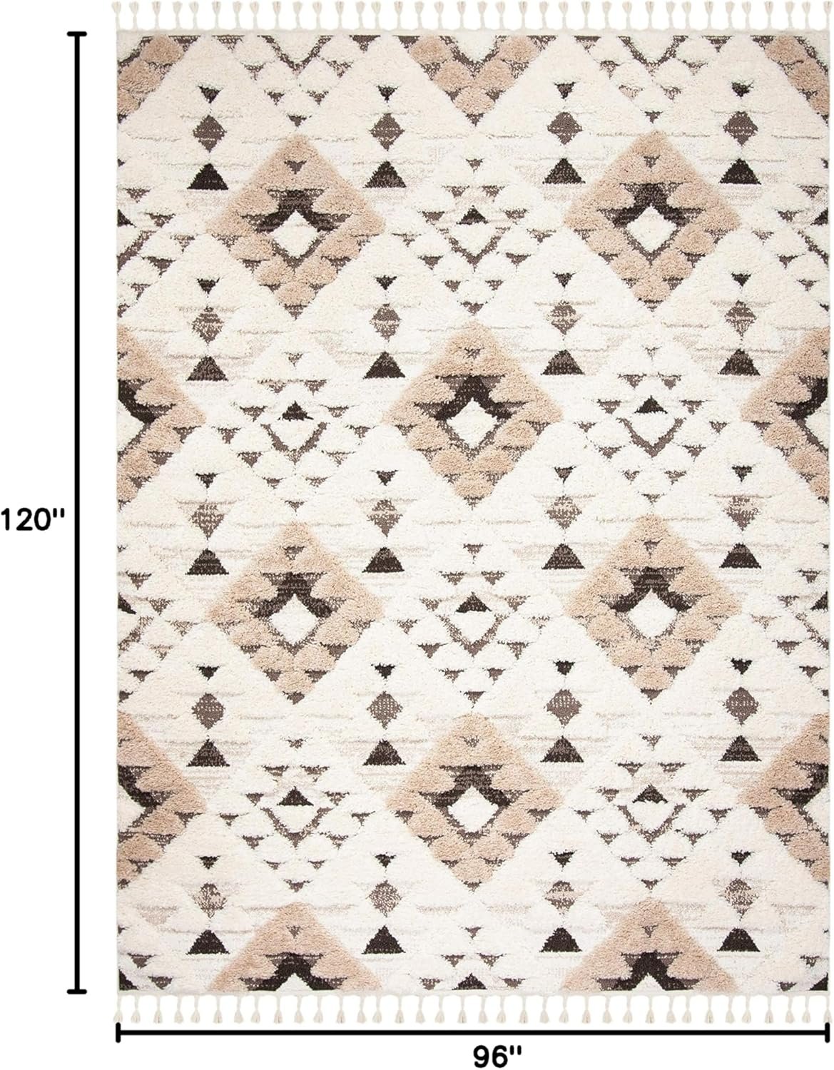 SAFAVIEH Moroccan Tassel Shag Collection Area Rug – 8′ x 10′, Ivory & Brown, Boho Design, Non-Shedding & Easy Care, 2-inch Thick Ideal for High Traffic Areas in Living Room, Bedroom (MTS688A)