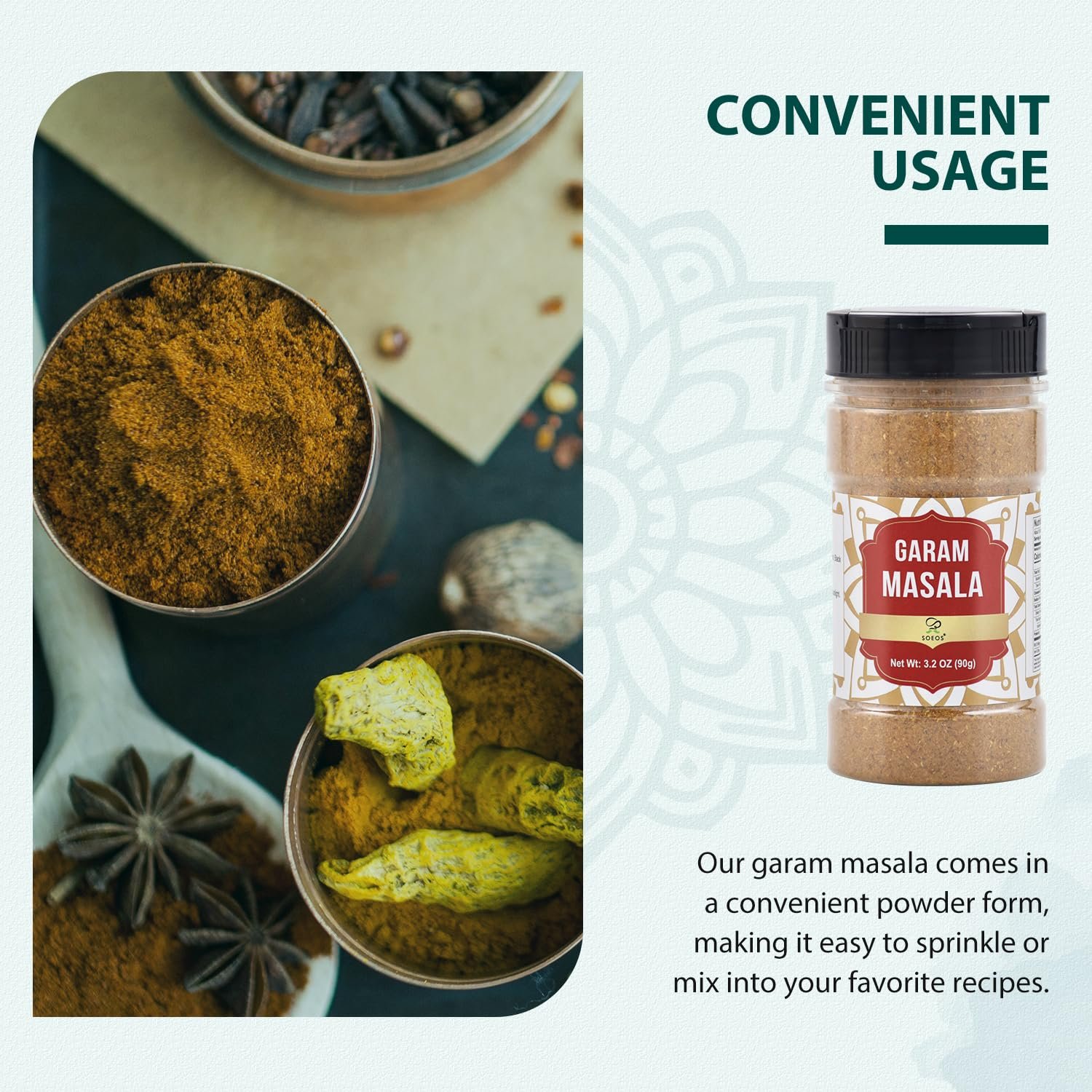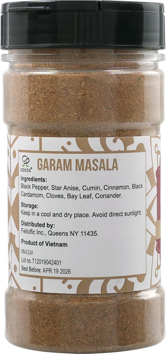 Soeos Garam Masala, 3.2 oz (90g), Garam Masala Spice Powder, All Natural, Vegan, No Colors, Kosher, Indian 8-Spice Blend, Masala Seasoning