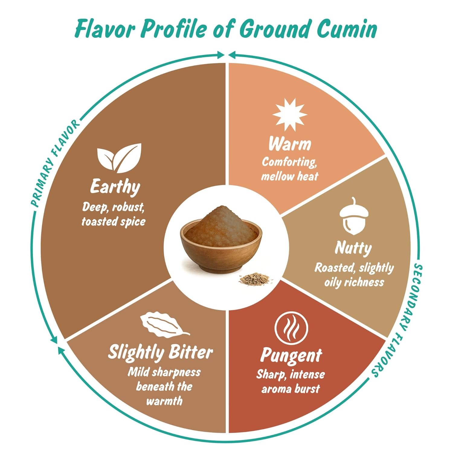 Aromatic and Pure: Made from raw, organic cumin seeds, our ground cumin is highly aromatic with bold, earthy, and slightly citrusy flavors that enhance any dish.