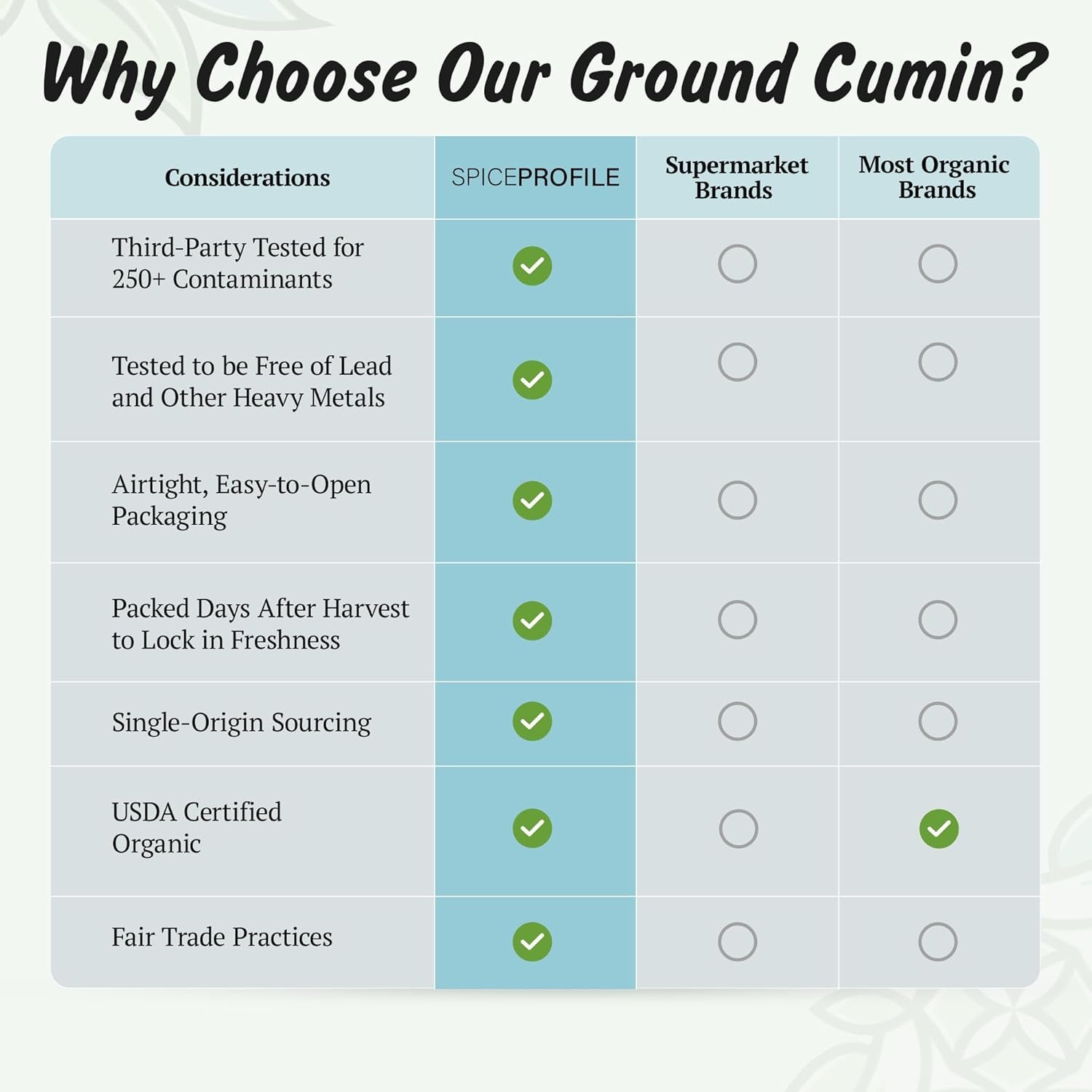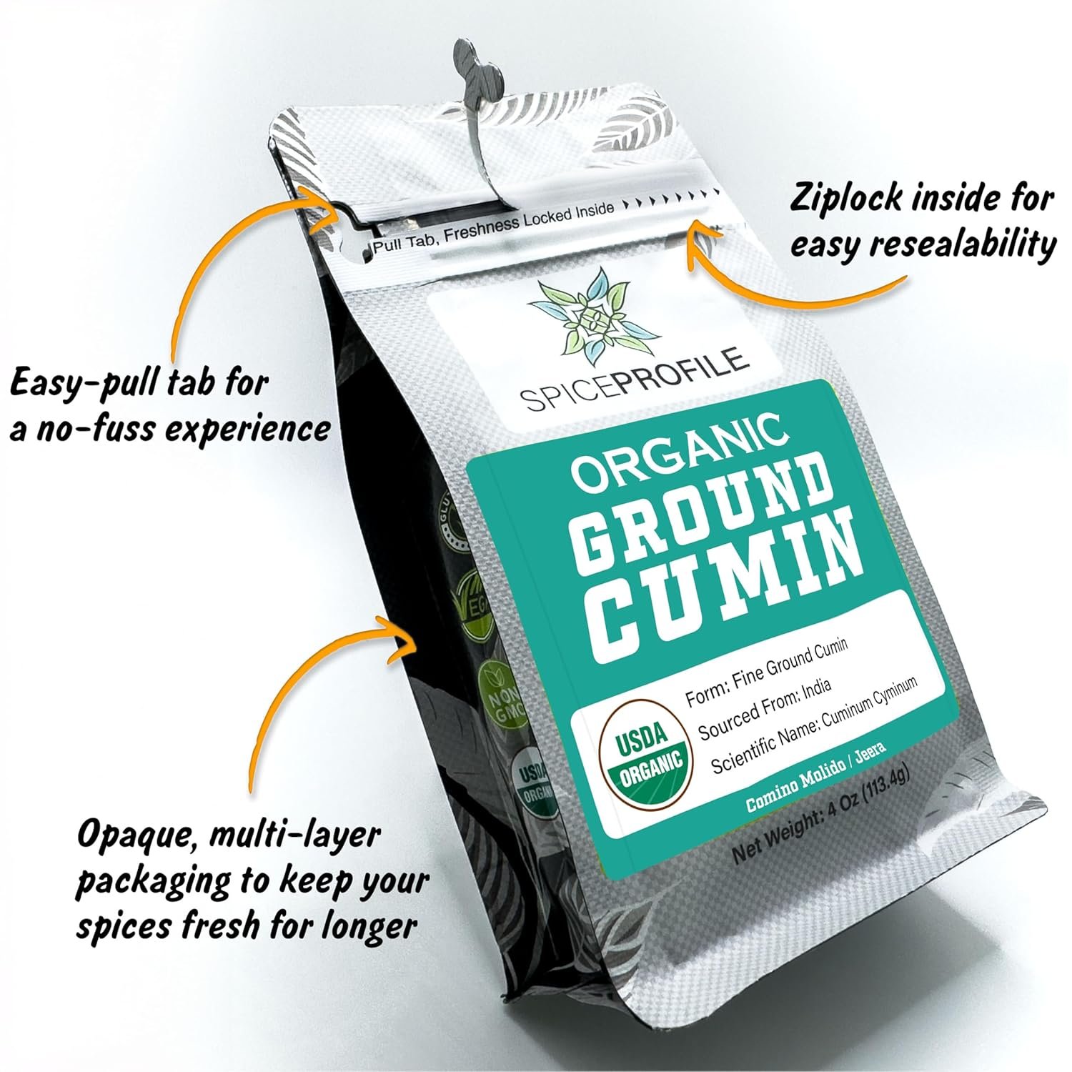 Spice Profile USDA Organic Cumin Powder, Lab Tested for Heavy Metals, Resealable 4oz Pouch, Jeera, Comino Molido