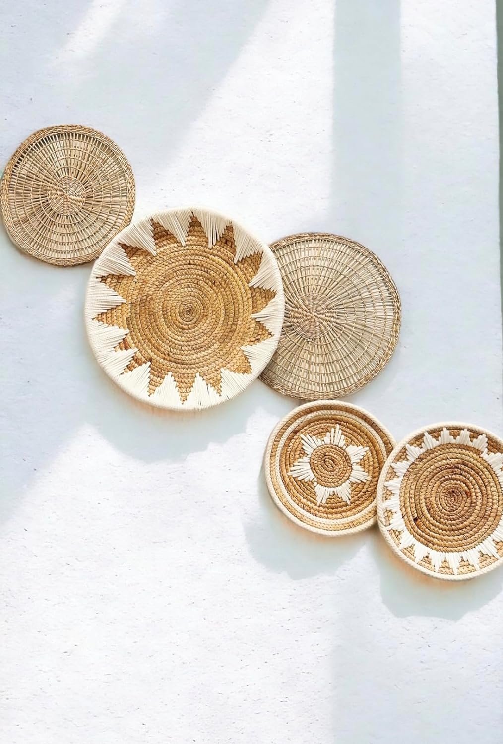 🕊Multi-Purpose: these hanging wall baskets are not just decorative baskets, but can be multi-functional. Use some as large fruit baskets, baskets for wall decor, kitchen trays, trivets, or even outside. Even as African baskets, southwestern decor, or as decorative trays for keys and accessories. However you style your Nami Collection baskets, they will bring a rustic, boho, and trendy feel to every room.
