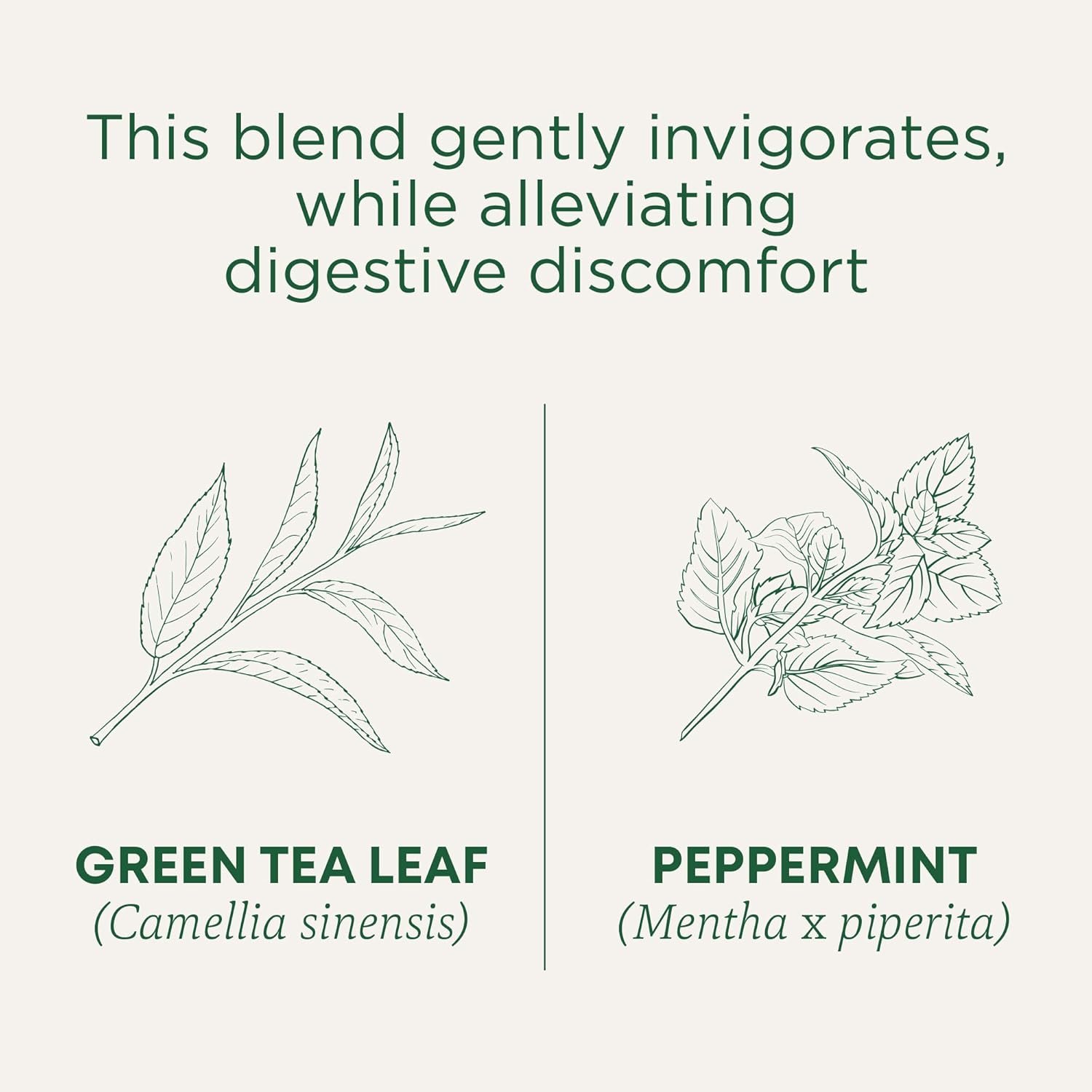 Herbal Power: Gently invigorates, while alleviating digestive discomfort.* Taste: Undeniably minty, aromatic and mildly tannic. Plant Story: We source our green tea from organic, Fair Trade farms in the scenic foothills of the Himalayas in Darjeeling, India. Blended with the mintiest peppermint we can find from pristine farms in the Pacific Northwest, this refreshing and mildly caffeinated tea uplifts mind, body and spirit.