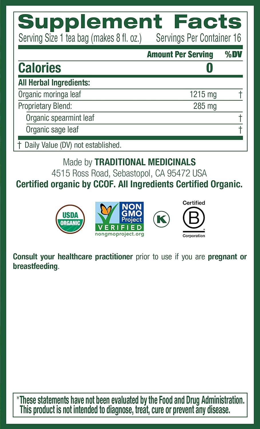 Traditional Medicinals Tea, Organic Moringa, Everyday Wellness, with Spearmint & Sage, 16 Tea Bags
