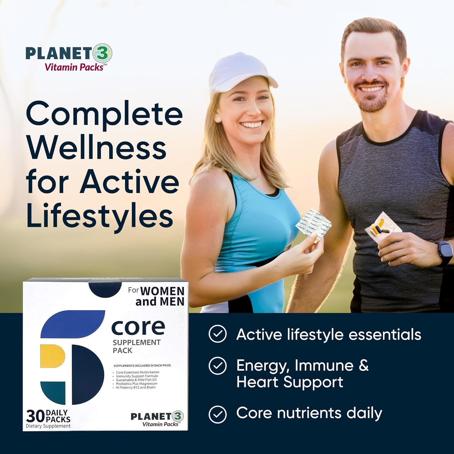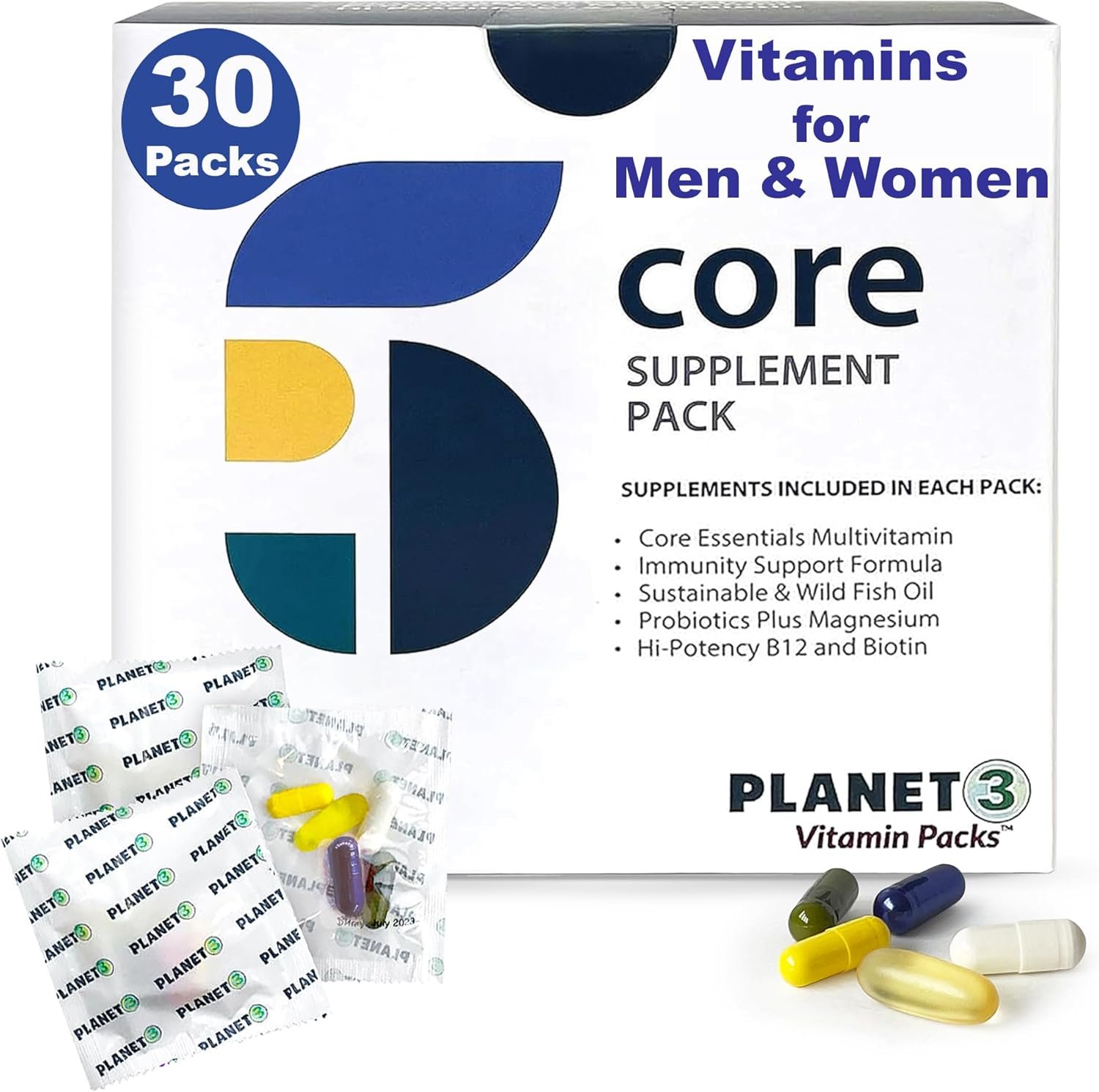 Vitamins for Women and Men, Planet 3 Vitamin Packs with Core Supplements, Multivitamin for Men and Women, Immune Support with Elderberry Vitaminc C and Zinc, Vitamin D, Burpless Omega 3, B12 & More